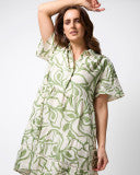 Kindred Moss Stripe Puff Sleeve Midi Shirt Dress Moss Stripe