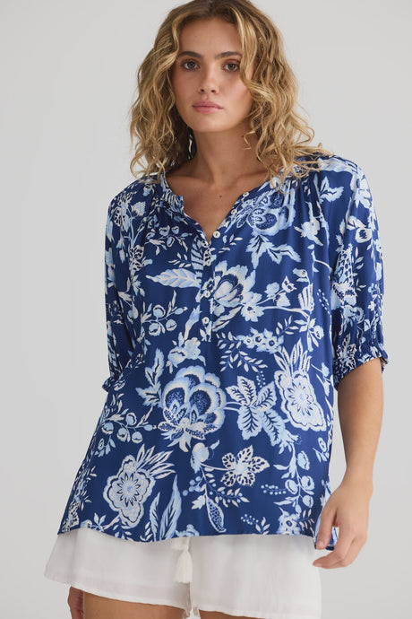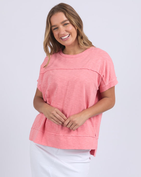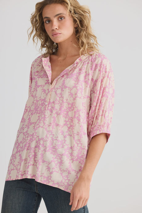 Expedition Raspberry shirred Neck Short Sleeve Top