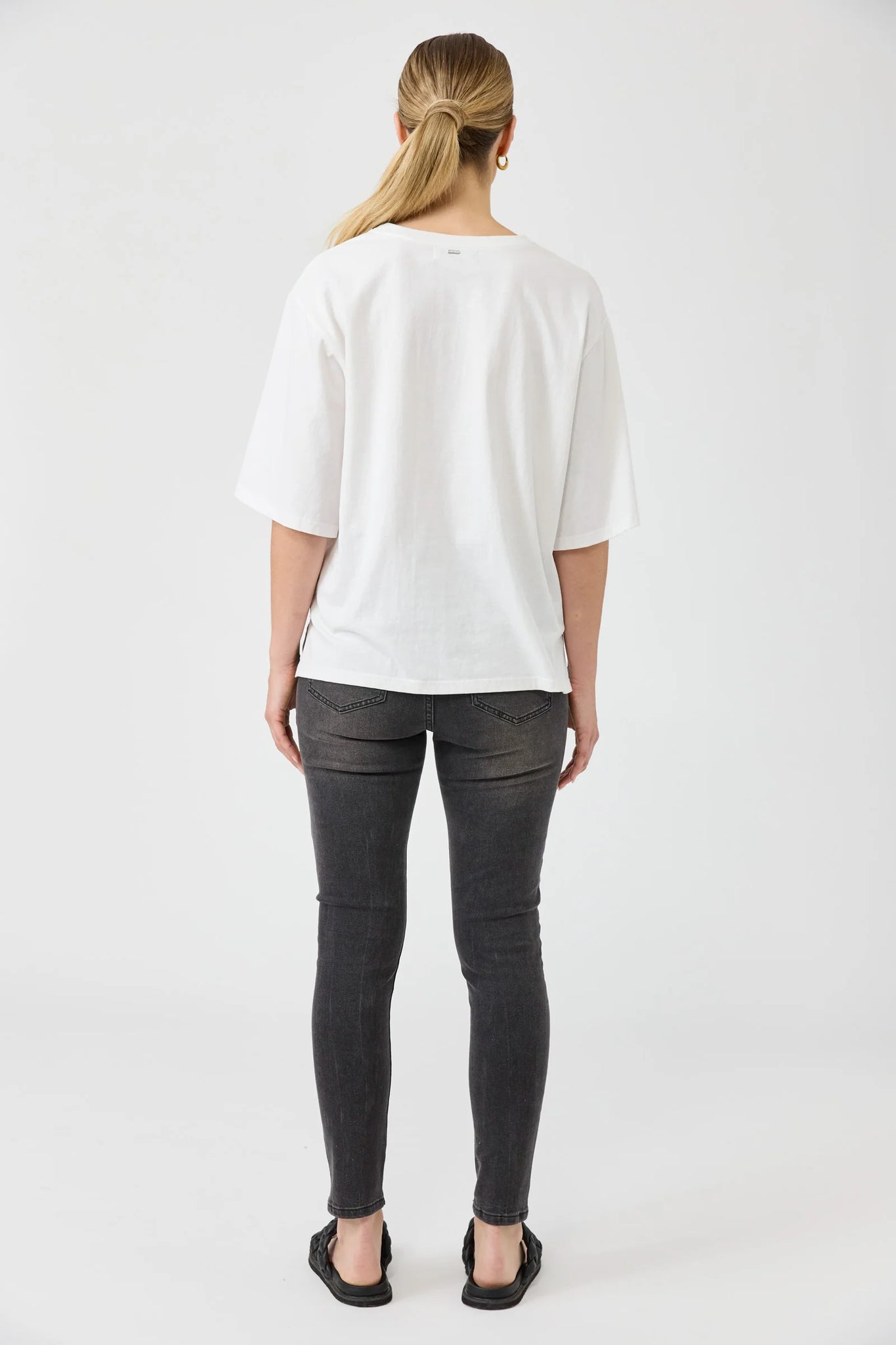 An elevated take on the everyday tee. Crafted from 100% cotton for softness and breathability. Features a round neckline, drop shoulders, and elbow-length sleeves. Designed in a boxy silhouette with a straight hem and small side splits for ease of movement.