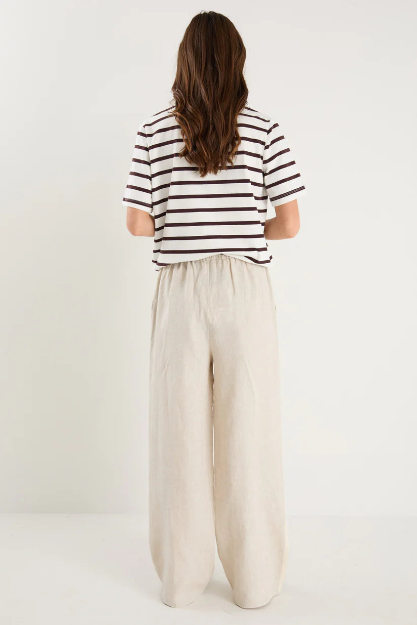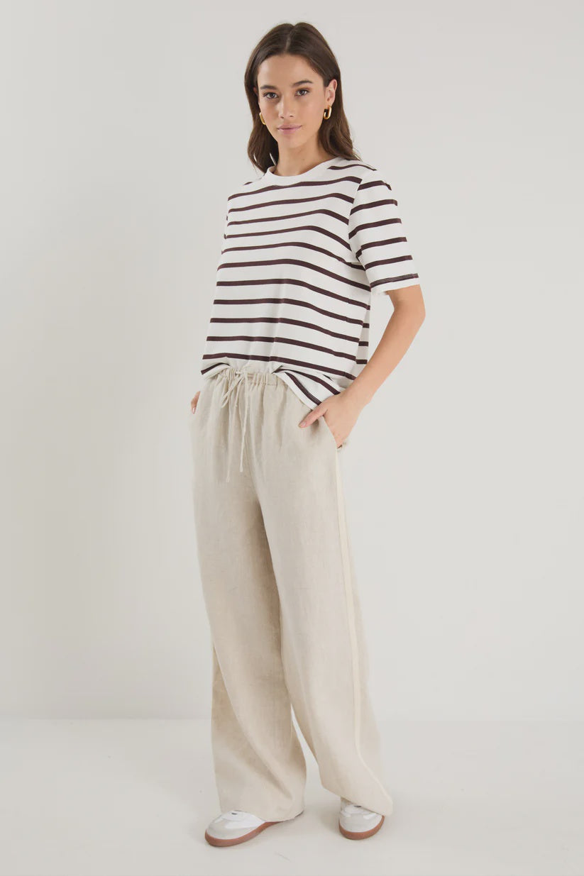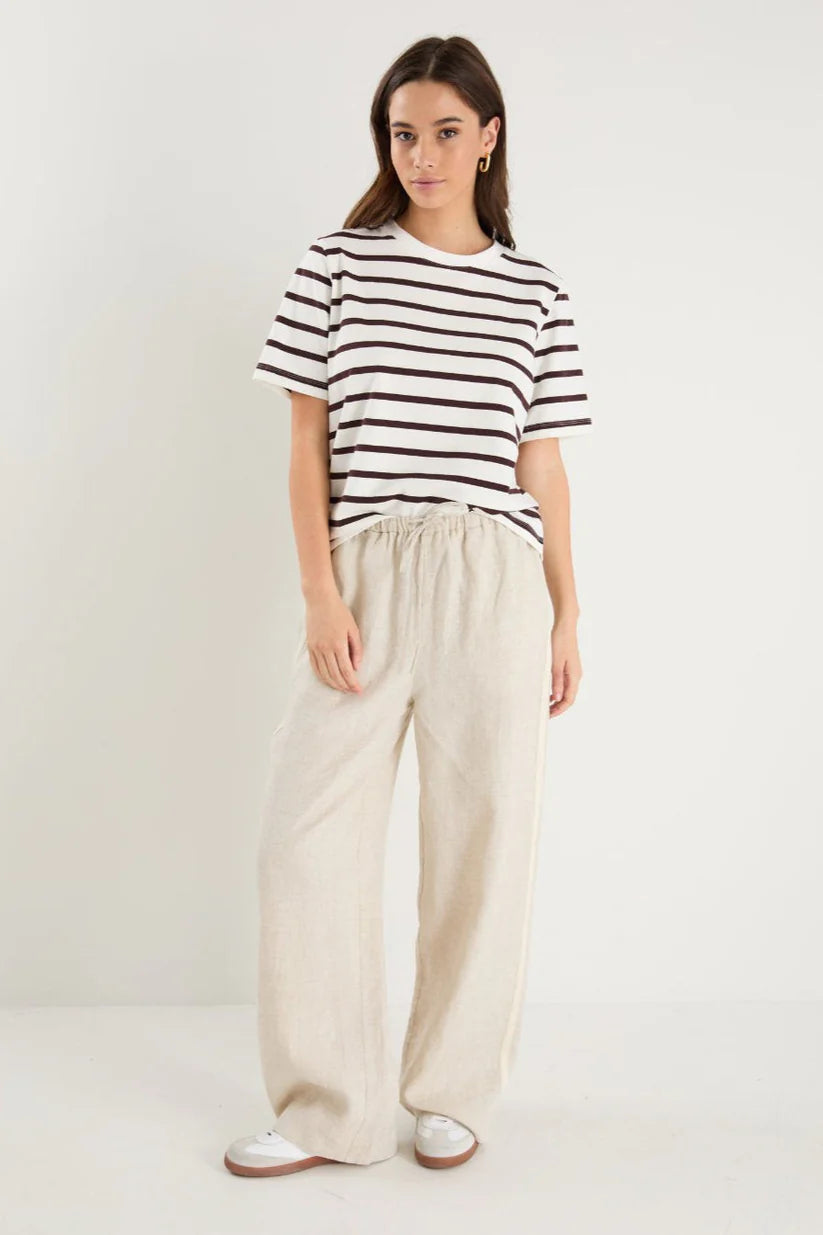 Effortless, comfortable, and oh-so-chic, the Townie Linen Pants from Stories Be Told are your new go-to for relaxed days with a touch of style. Designed in a natural linen fabric, these pants feature a high-rise fit with an elastic waistband for all-day comfort. The side stripe detail adds a sporty, modern edge, elevating the classic linen pant.
